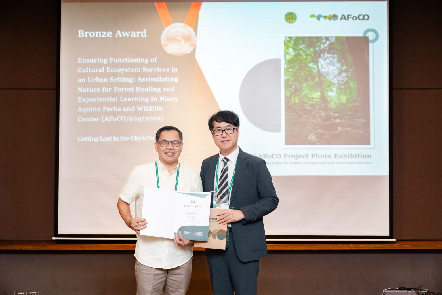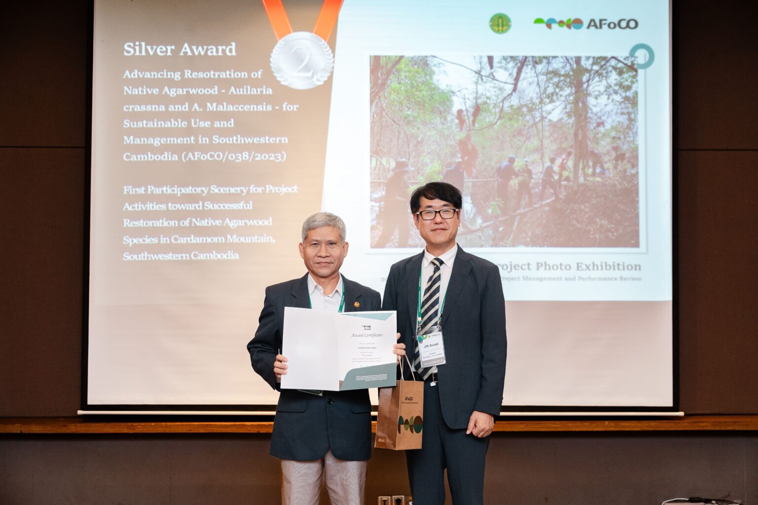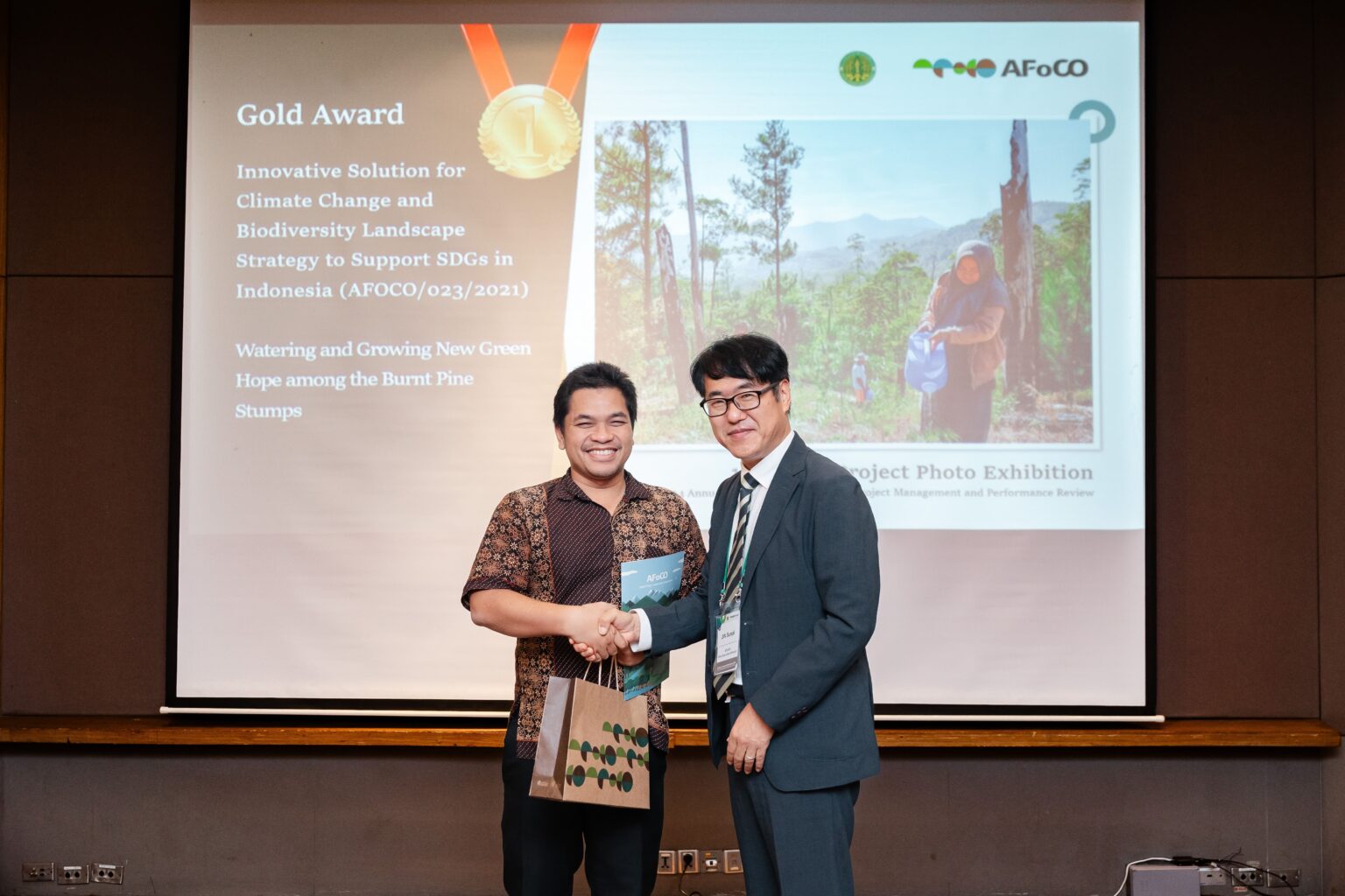 The 1st AFoCO Project Photo Exhibition was held concurrently with the workshop. Participants explored the projects through photos, and the winners were selected by combining the jury assessment and public vote. As a result, the Gold Award was presented to the project titled Innovative Solution for Climate Change and Biodiversity Landscape Strategy to Support SDGs in Indonesia (AFOCO/023/2021). It received high scores from both public vote and the jury for its clear depiction of the project’s main activities. The Silver Award was honored to the project code AFoCO/038/2023 (Cambodia) and AFoCO/025/2021 (Lao PDR). The Bronze Award was given to the project code AFoCO/015/2020 (Myanmar), AFoCo/030/2022 (Thailand), and AFoCO/029/2022 (Philippines).